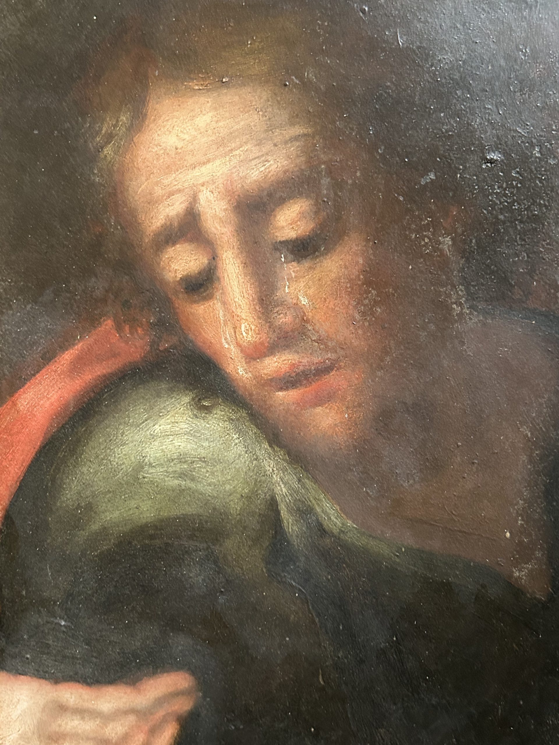 The use of slate as a painting support is a prestigious technical signature of the Ligurian region.
