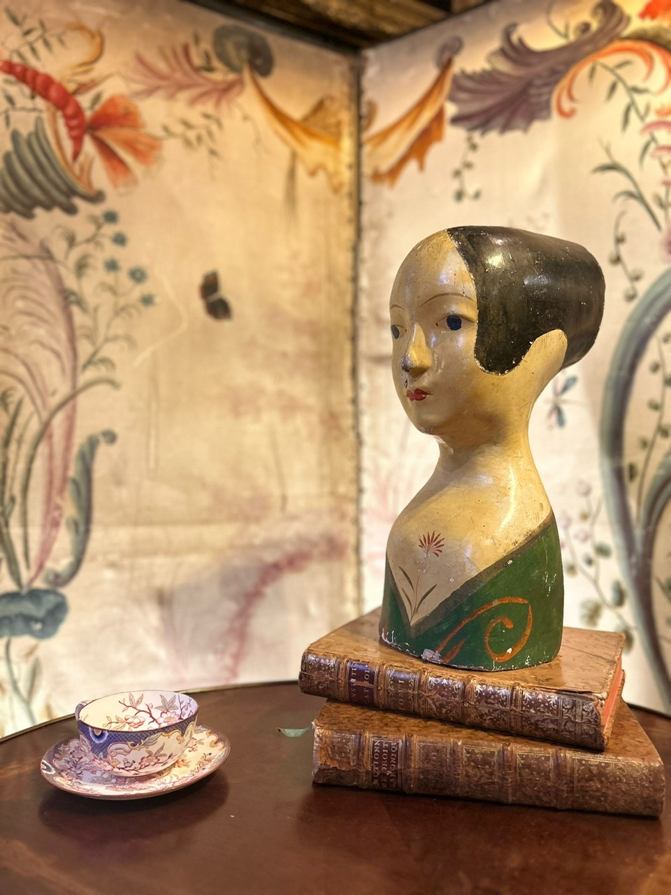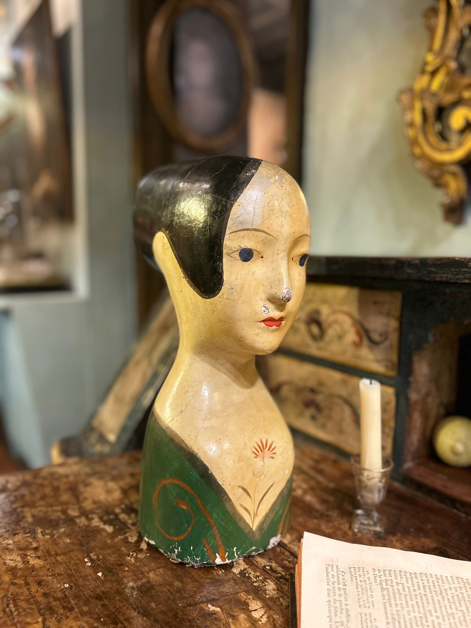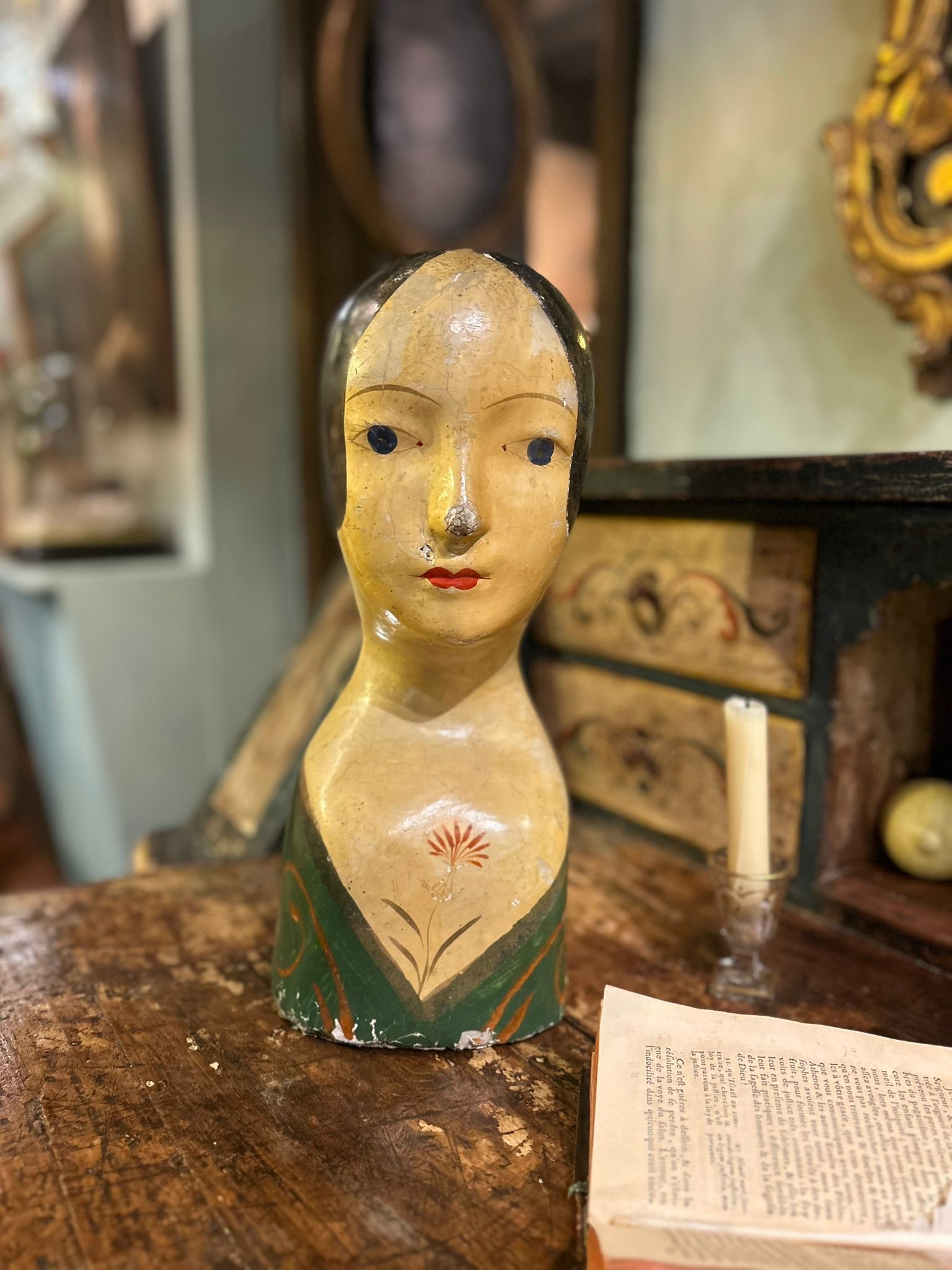 Les marottes apparaissent dans la seconde moitié du XVIII e siècle et servaient de supports aux coiffes lorsqu’elles n’étaient pas portées. La forme de la marotte reprenant celle d’une véritable tête, la coiffe restait bien repassée et bien en forme ; ainsi, les modistes et les repasseuses de coiffes utilisaient fréquemment les marottes dans leur travail.