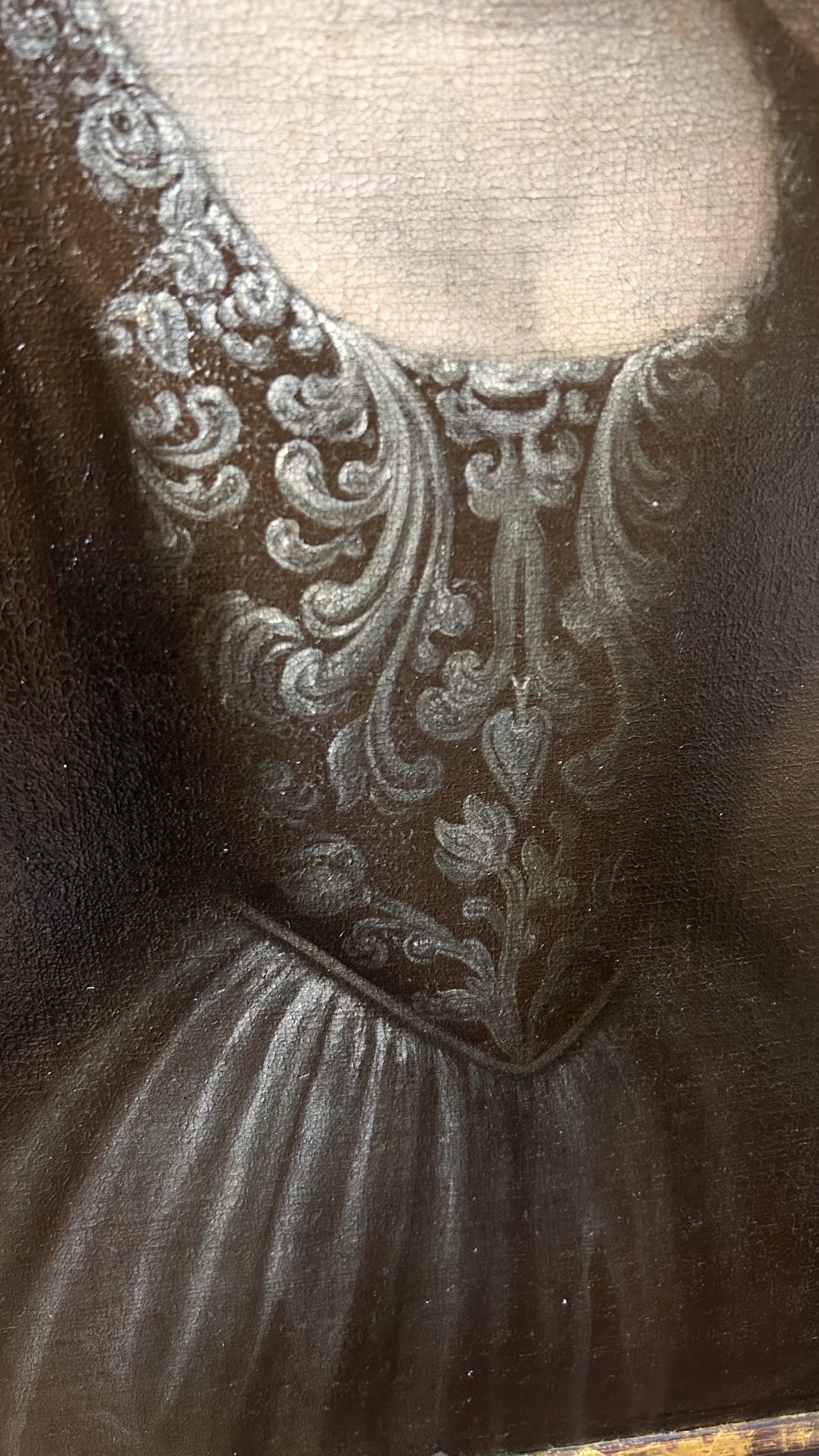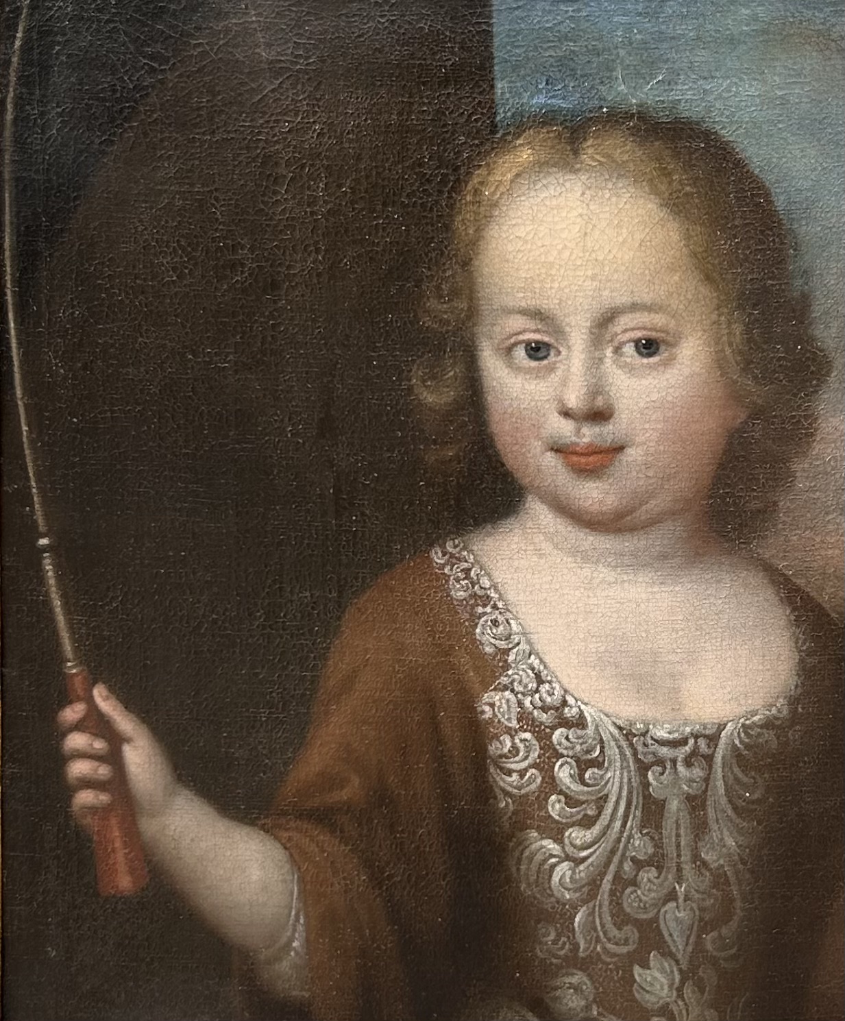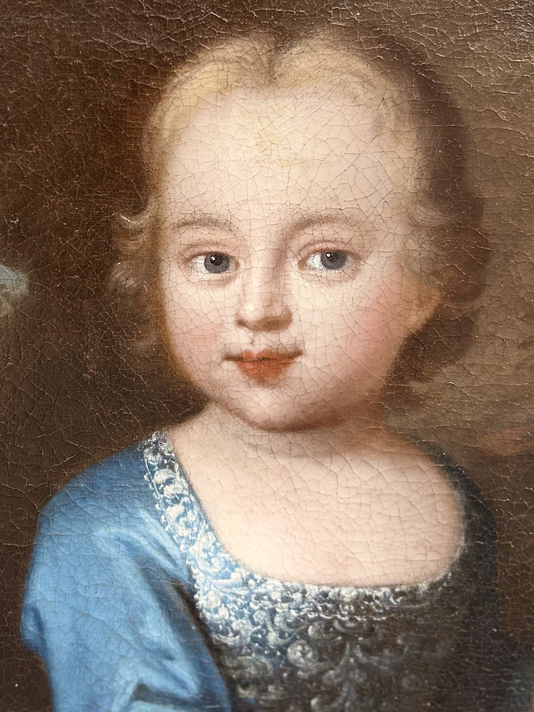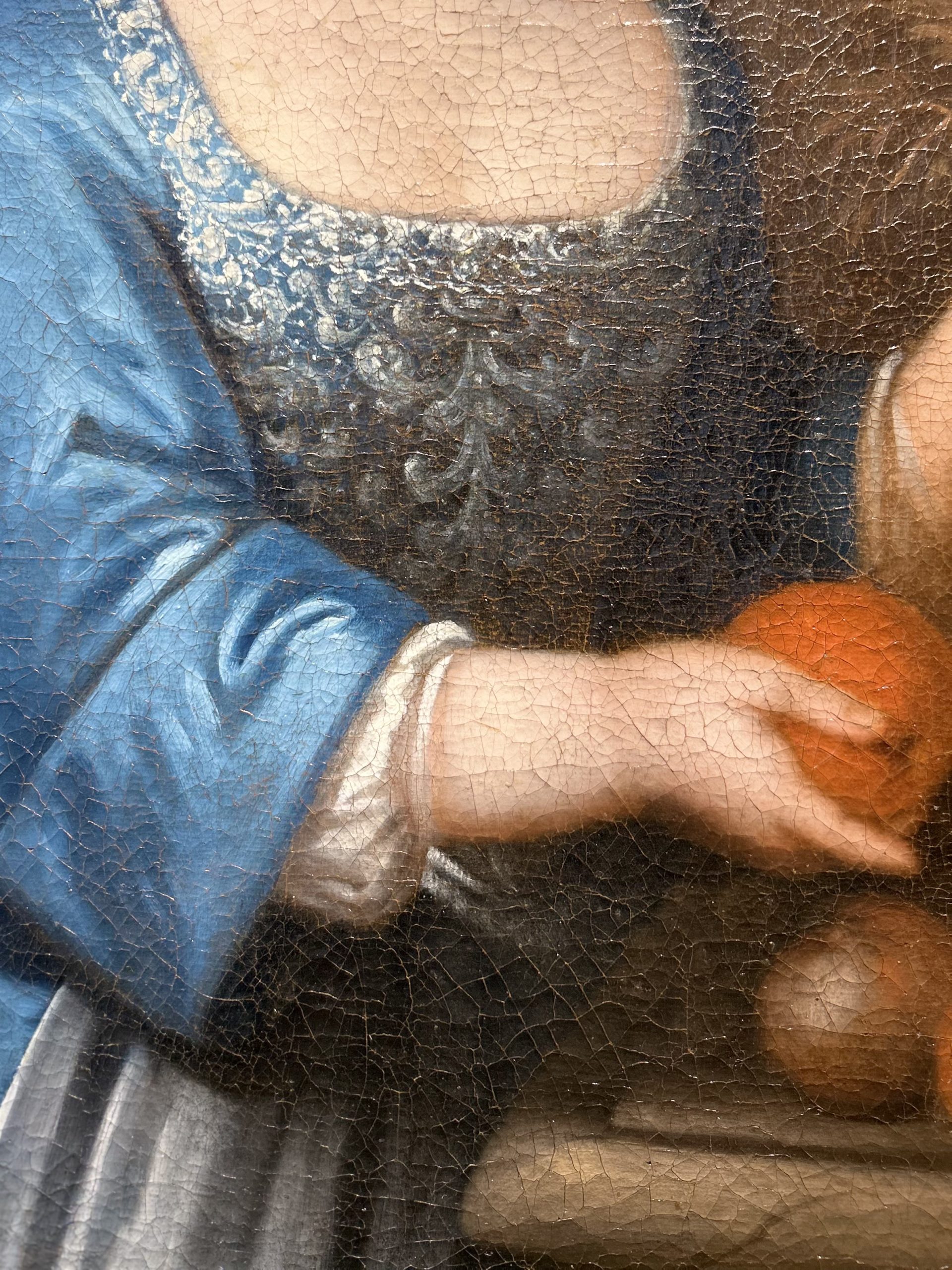 Paire de huiles sur toiles dans des ovales feints, jeune fille tenant une grappe de raisins devant un perroquet et jeune fille écuyère près de son cheval, trace de signature et de date en bas à droite, cadres postérieurs.