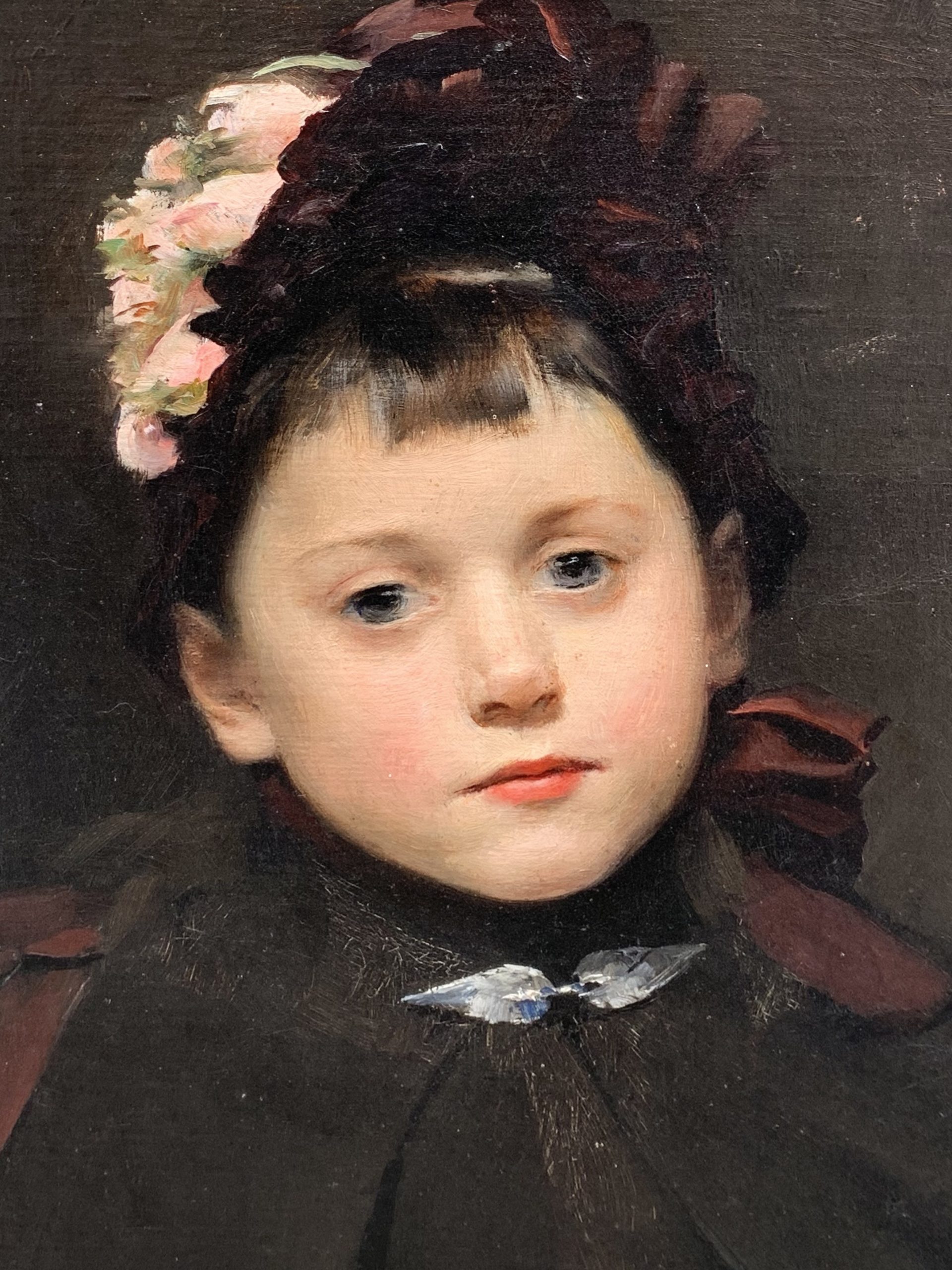 Portrait ovale de Louise Guesde, fille de Jules Guesde (1845-1922), par le peintre espagnol Fernando Tirado, formé à l’Ecole des Beaux-Arts de Séville, élève des peintres Cano et Gérôme, et exposant au Salon parisien de 1879 à 1884.