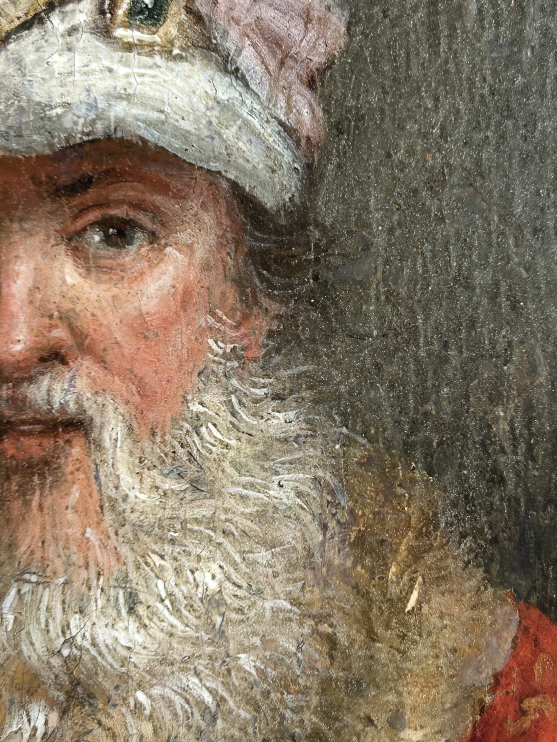 Portrait représente un vieil homme barbu dans une tenue d’apparat orientale, un sujet particulièrement prisé au XIXe siècle lors de la redécouverte du goût pour le Siècle d’Or hollandais. Le personnage est représenté à mi-corps, de face, portant un imposant turban orné d’un cabochon et une riche cape rouge bordée de fourrure.