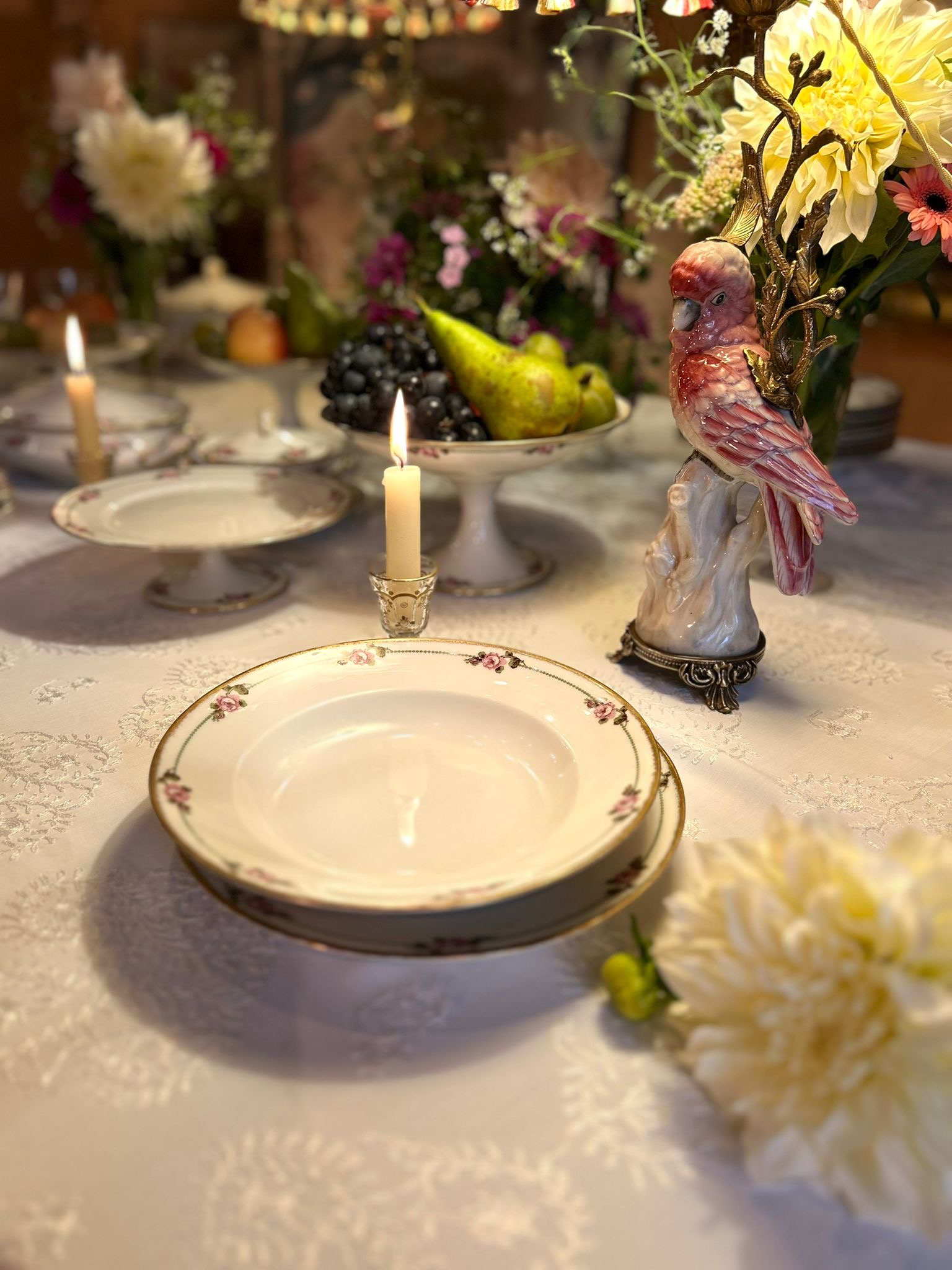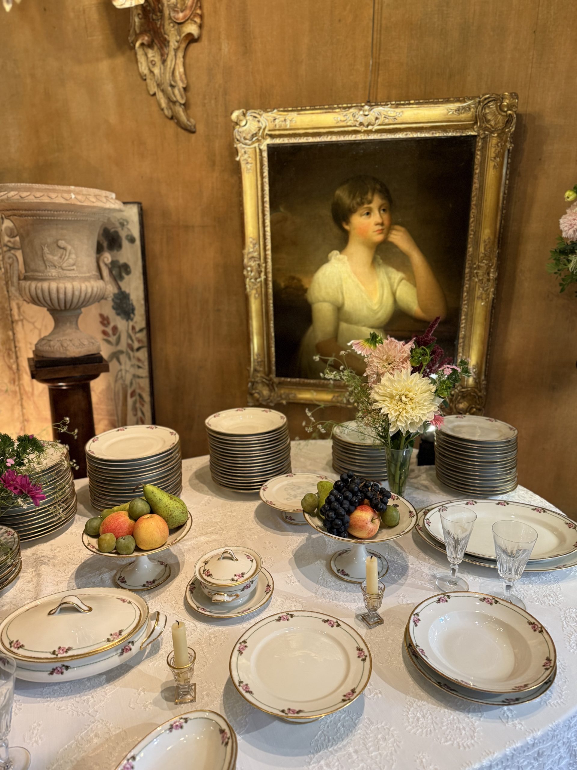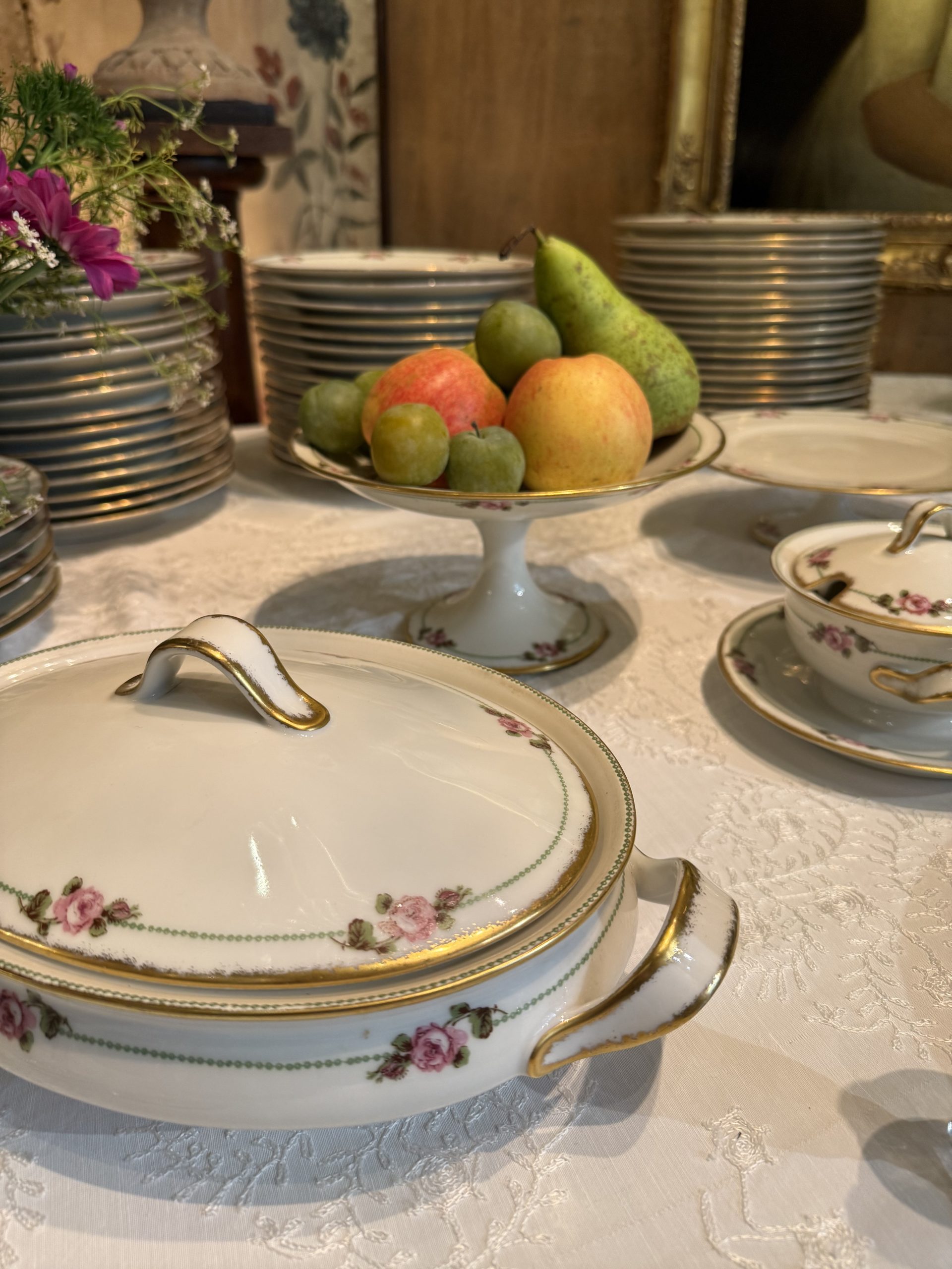 Important service de table en porcelaine à décor de roses, 120 pièces.
