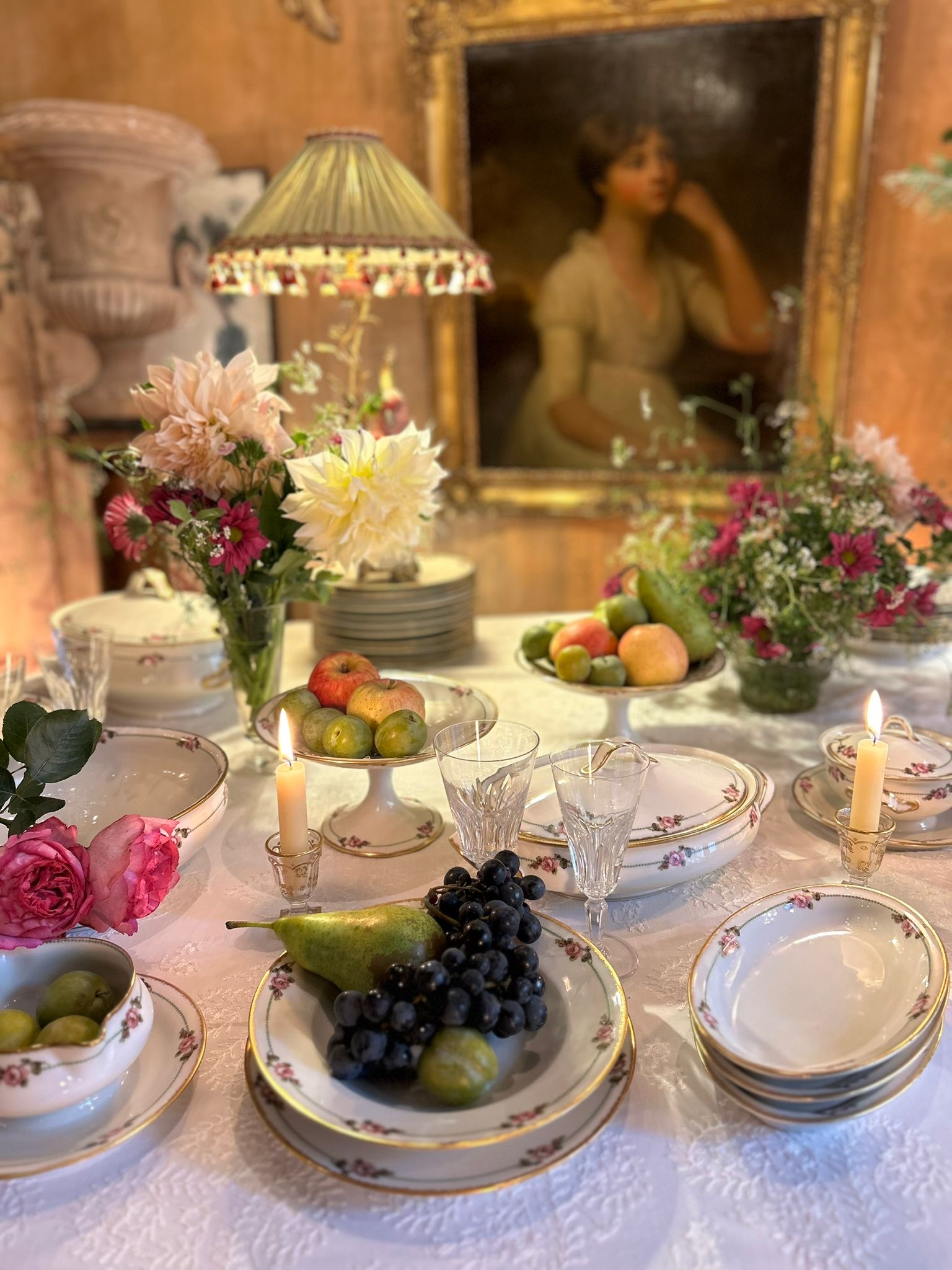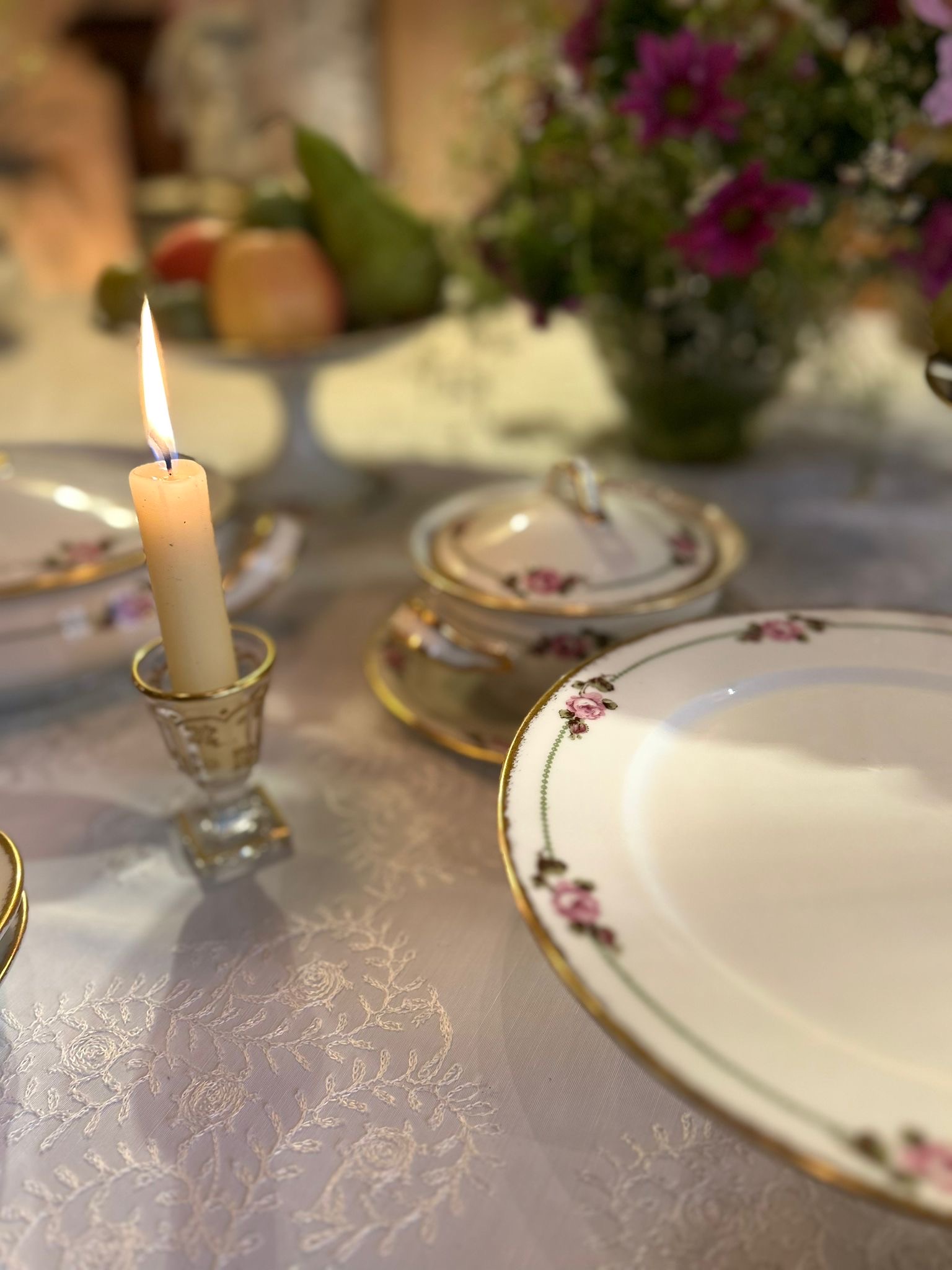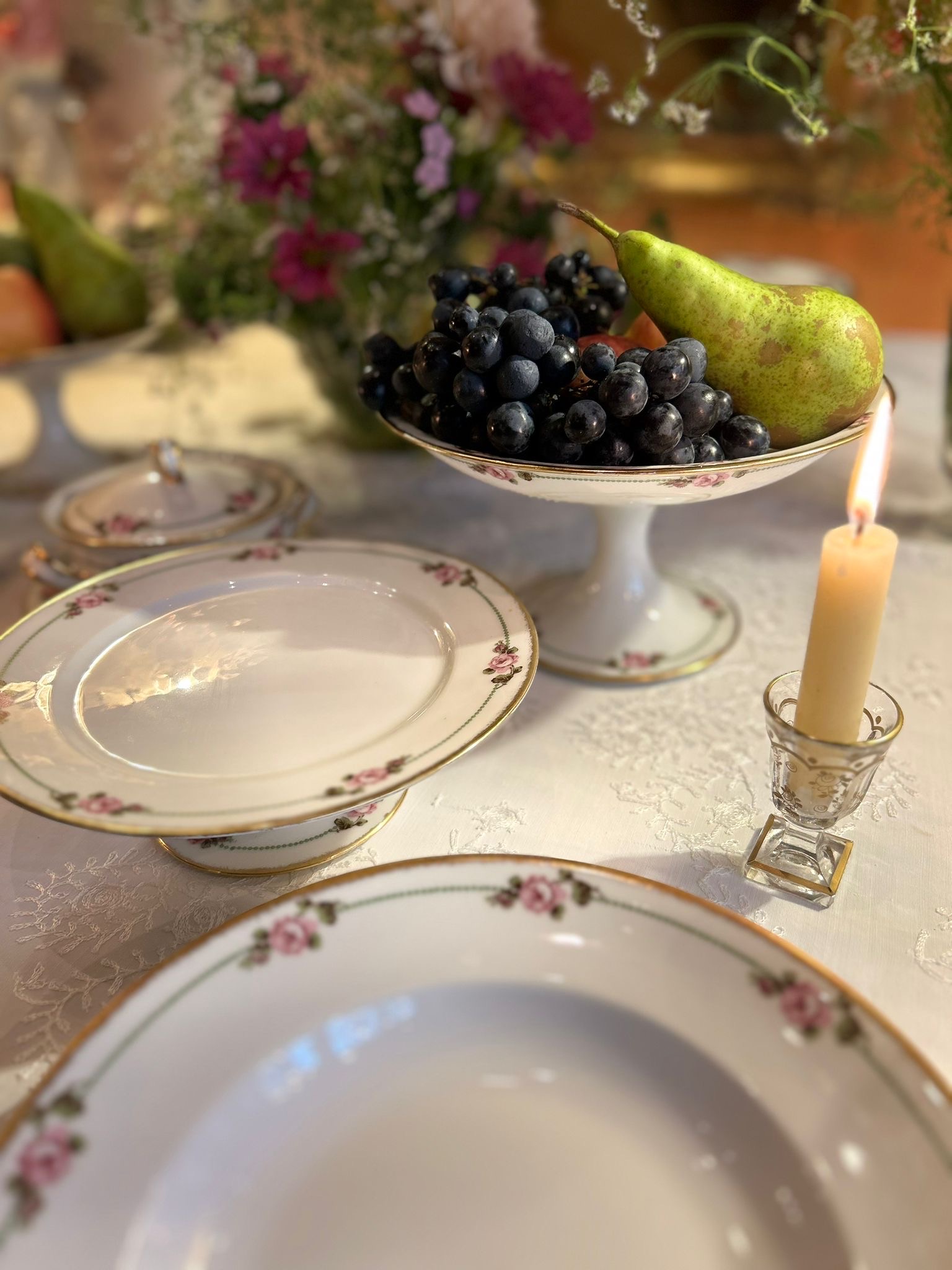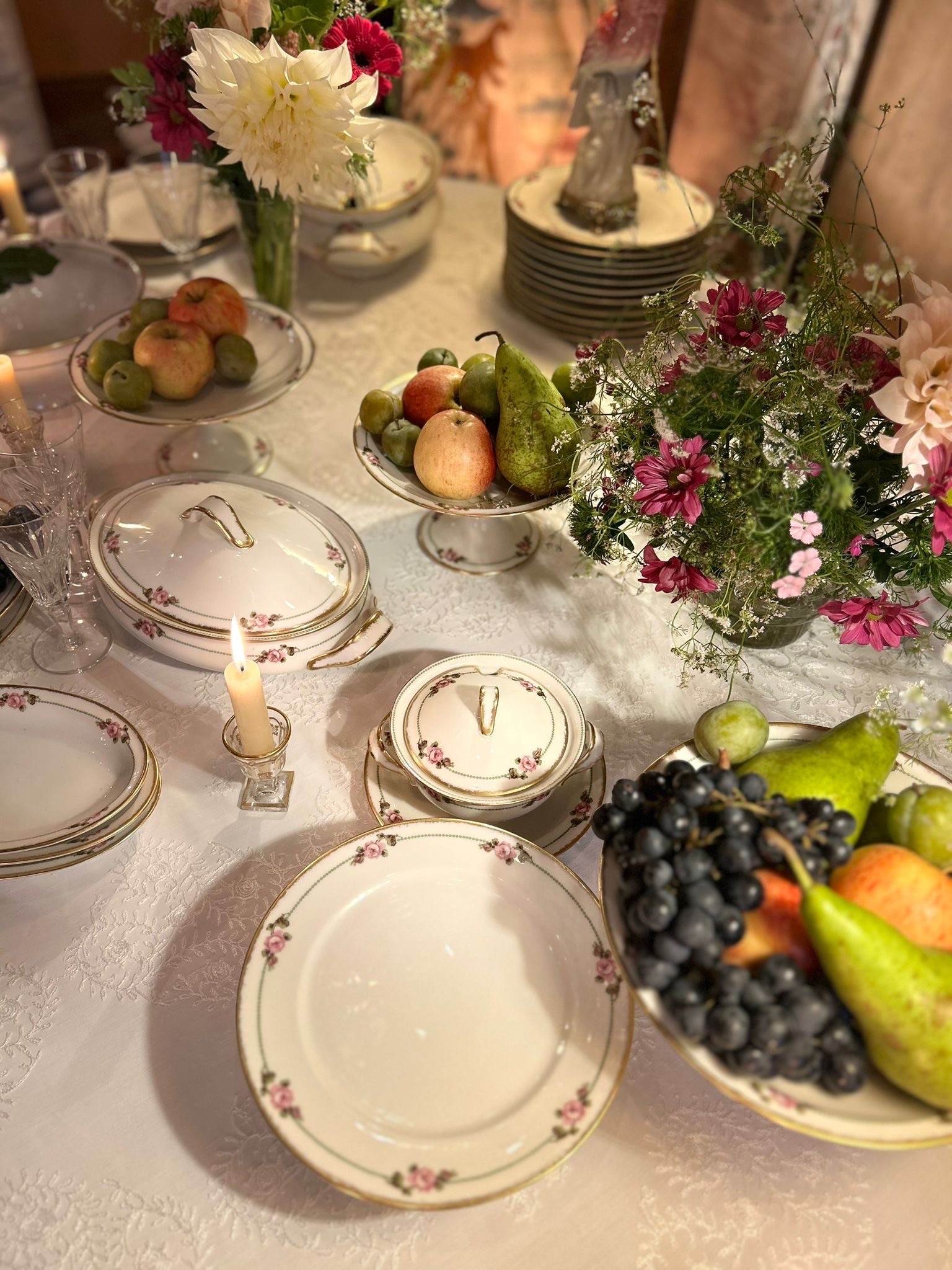 Important service de table en porcelaine à décor de roses, 120 pièces.