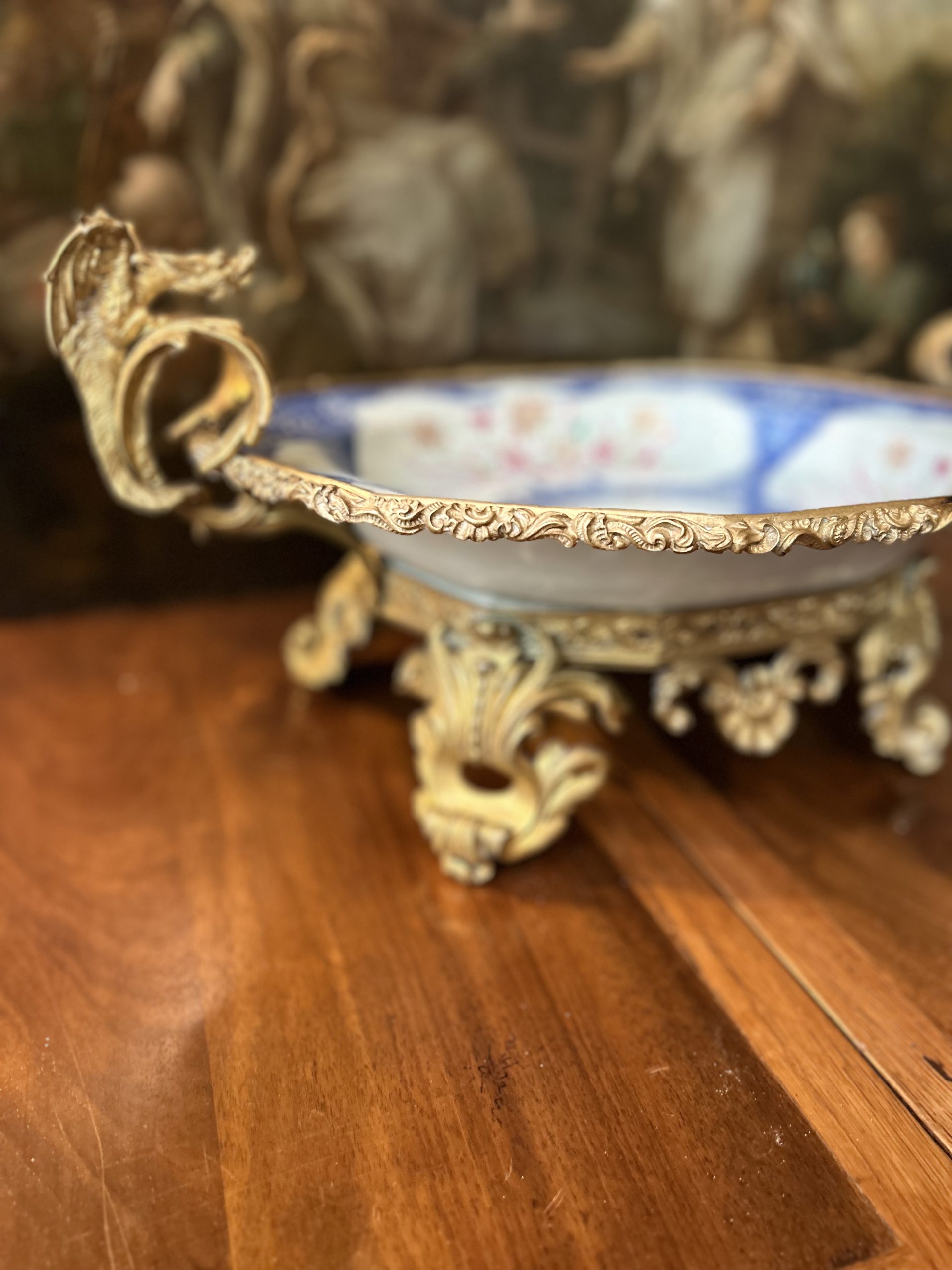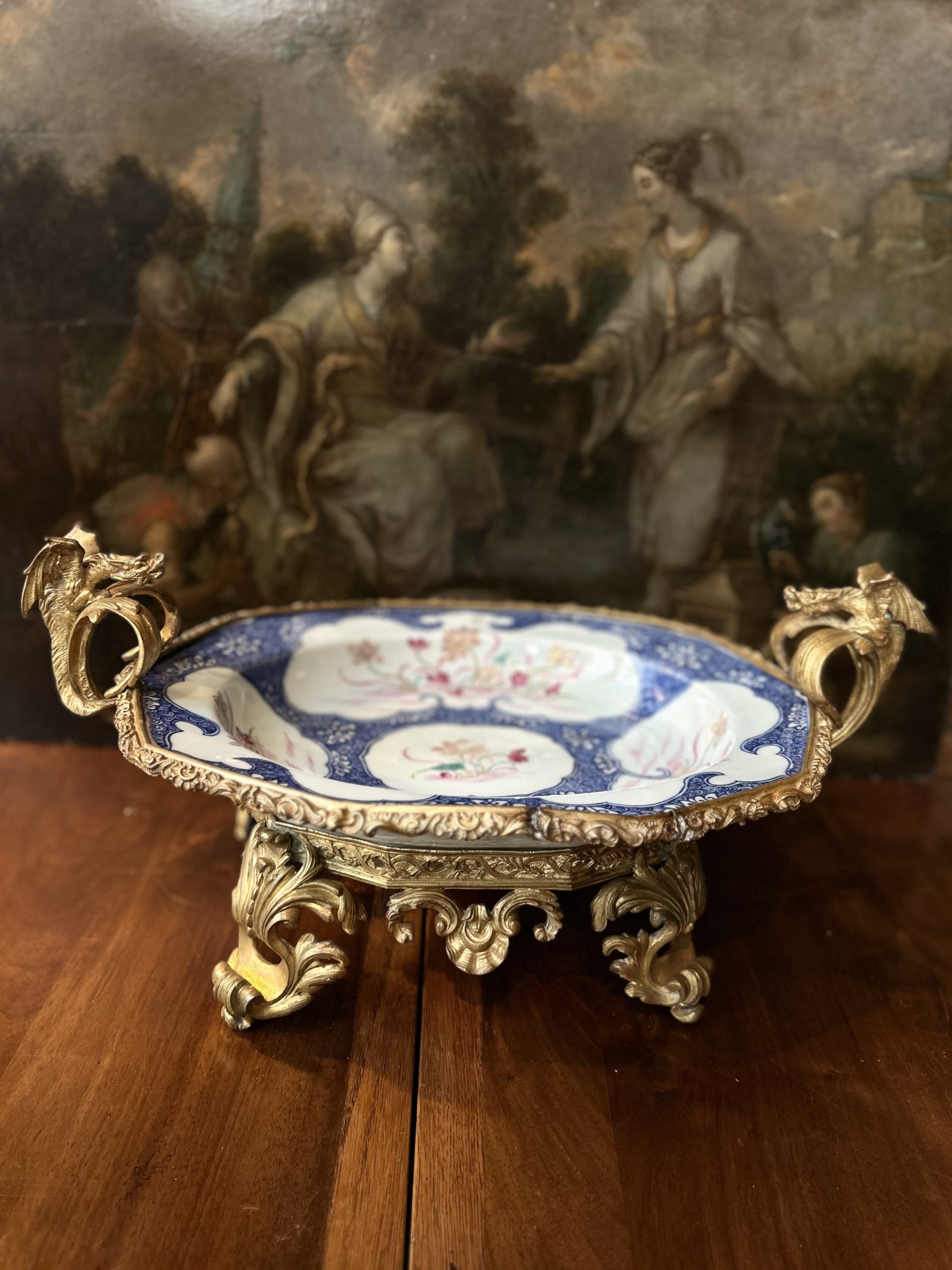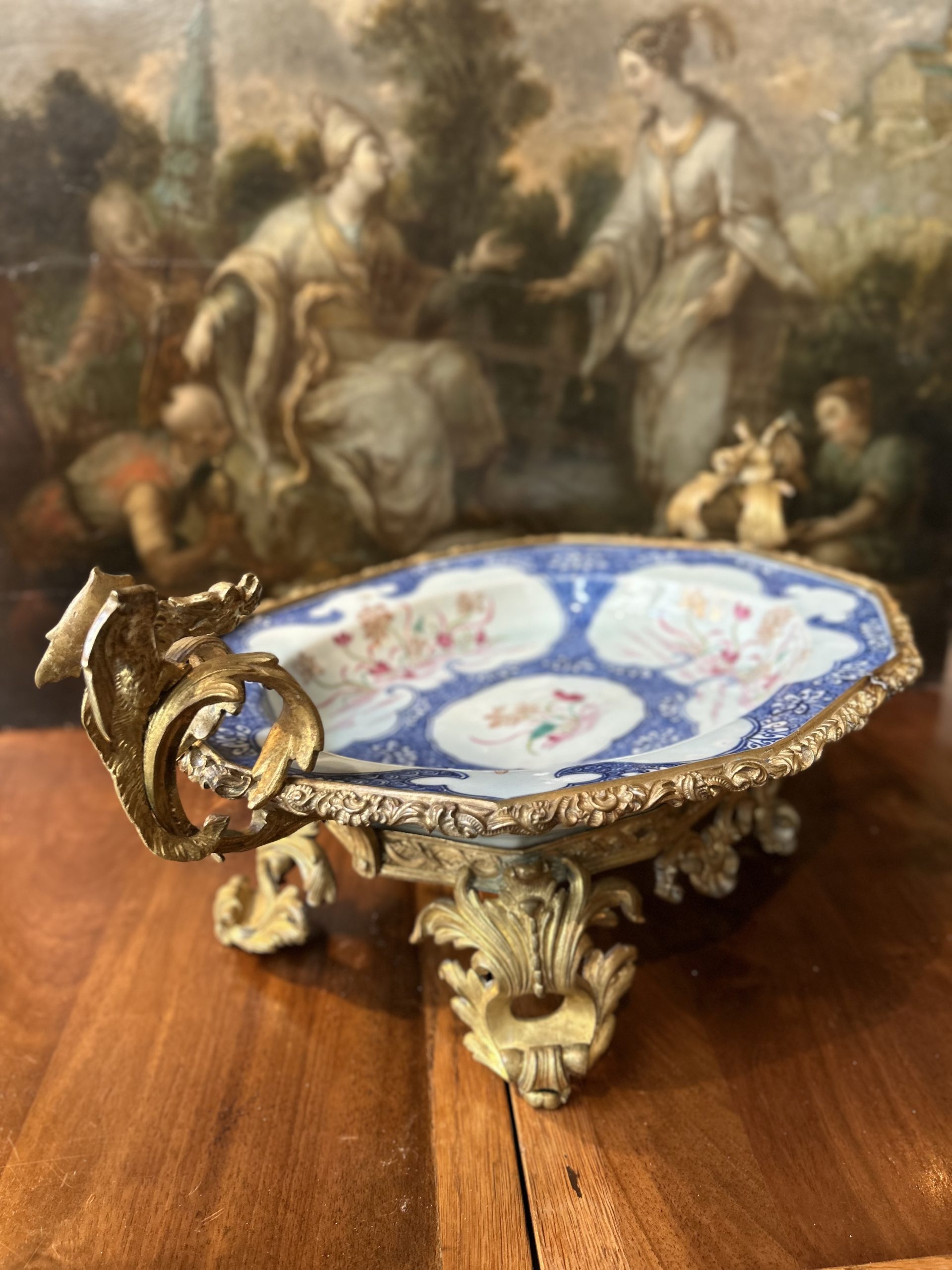 The gilded bronze frame is in keeping with the spirit typical of the Louis XV style.