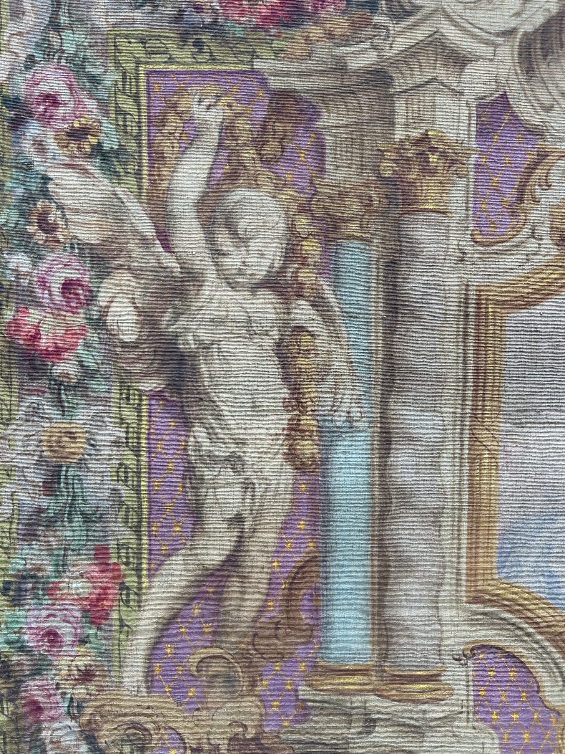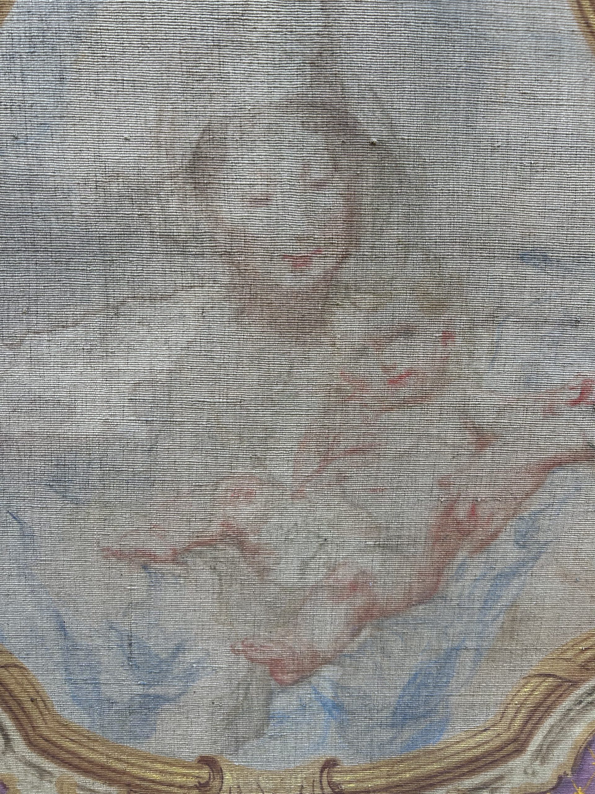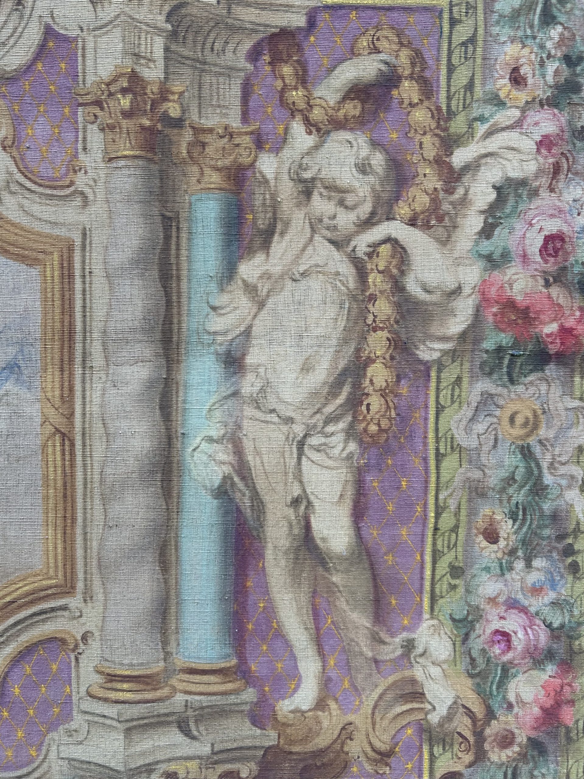 This painting by Mattia Traverso, dating from the early 20th century, depicts the Virgin and Child in an architectural composition inspired by 18th-century religious tapestries.