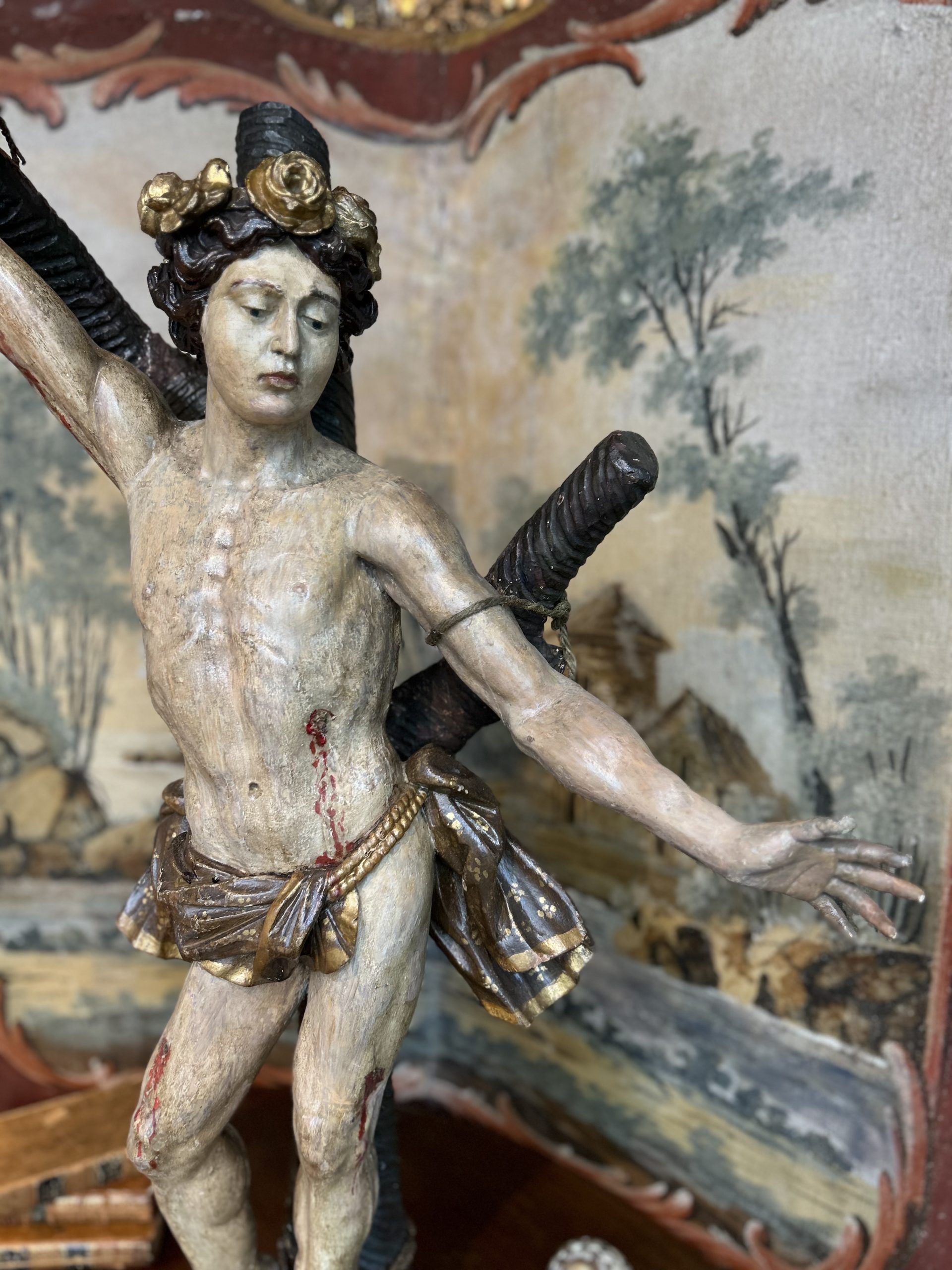 Saint Sebastian in Carved Wood – 17th Century